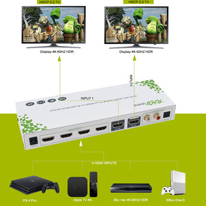 XOLORspace 23421 (2022NEW) HDMI 2.0 4x2 4K 60HZ HDR HDMI Matrix Switch Splitter w/ one HDMI audio output only