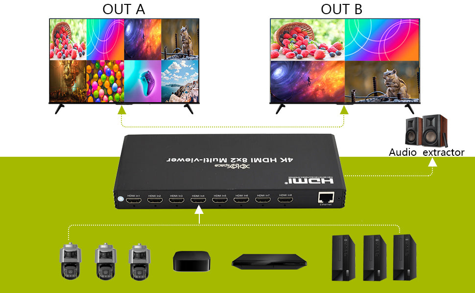 XOLORspace QV802 4K 60hz HDMI 8x2 Multi-viewer compliant with HDMI 2.0 and HDCP 2.1