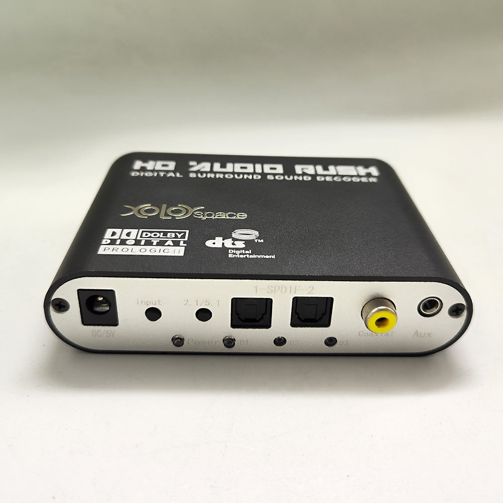 Digital Audio Decoder: Used 24-bit audio DSP; 96 KHz digital receivers, and 192 KHz/24bit ADC and DAC. Support Dolby Digital AC-3 Dolby Pro Logic, DTS, PCM and other digital audio format source decode, a variety of sound field and the replay results of two listening modes, 5.1 analog audio output, will auto work with different amplifier and speakers to get different sound effects, easy to connect many entertainment devices which with optical and coaxial digital signal and analog output signals (such as: set-top boxes, HD players, Blu-ray DVD, PS2, PS3, X8OX360)